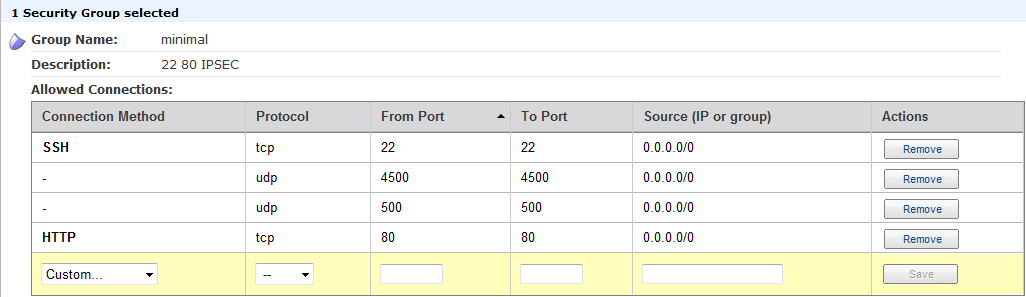 cat > /tmp/IOS.cfg << EOFThat's it! Now I can ping the private ($EC2PRIVATE) address of the EC2 instance from one of my internal machines at home. This works in my environment because the 10.x.x.x address assigned by Amazon happens to fall within the default route in use by my home gateway. You may need to add a static route if you're pushing the 10/8 block elsewhere in your environment.
