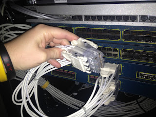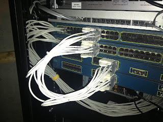Apparently the 9500 is entirely open from front to back, which is new for Cisco. I guess the line cards and fabric modules connect directly to one another (I haven't seen it yet). This is nifty, because it allows front-to-back airflow without lots of crazy ducting like the Nexus 7010, which seems like it's half duct/half switch.